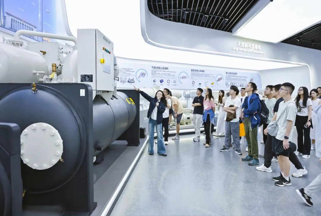 在产品展厅,师生们循着空调发展史,见证了格力从空调组装厂到实现核心零部件自主生产、拥有50项国际领先技术的蜕变,特色产品与应用于重大工程的中央空调机组,充分展现了格力在高端制造领域的硬实力。