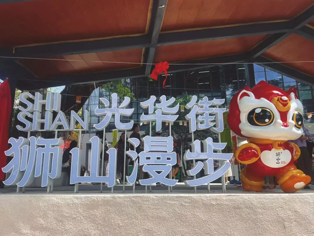 活动当天,醒狮踩着鼓点腾跃舞动,锣鼓声穿透街巷,吸引市民驻足围观,欢声笑语与鼓点声交织,让这条承载老珠海记忆的街巷充满了浓郁的烟火气与新生的活力。随着街区焕新启幕,同学们穿梭于街头巷尾,与街区原创IP“狮山山”、青芒广场、勒杜鹃平台等打卡点互动拍照,了解光华老街历史,并与特色民宿、创意咖啡及独立设计等青年主理人交流,深入体验街区以人为核心的创意社区与文创孵化平台理念。