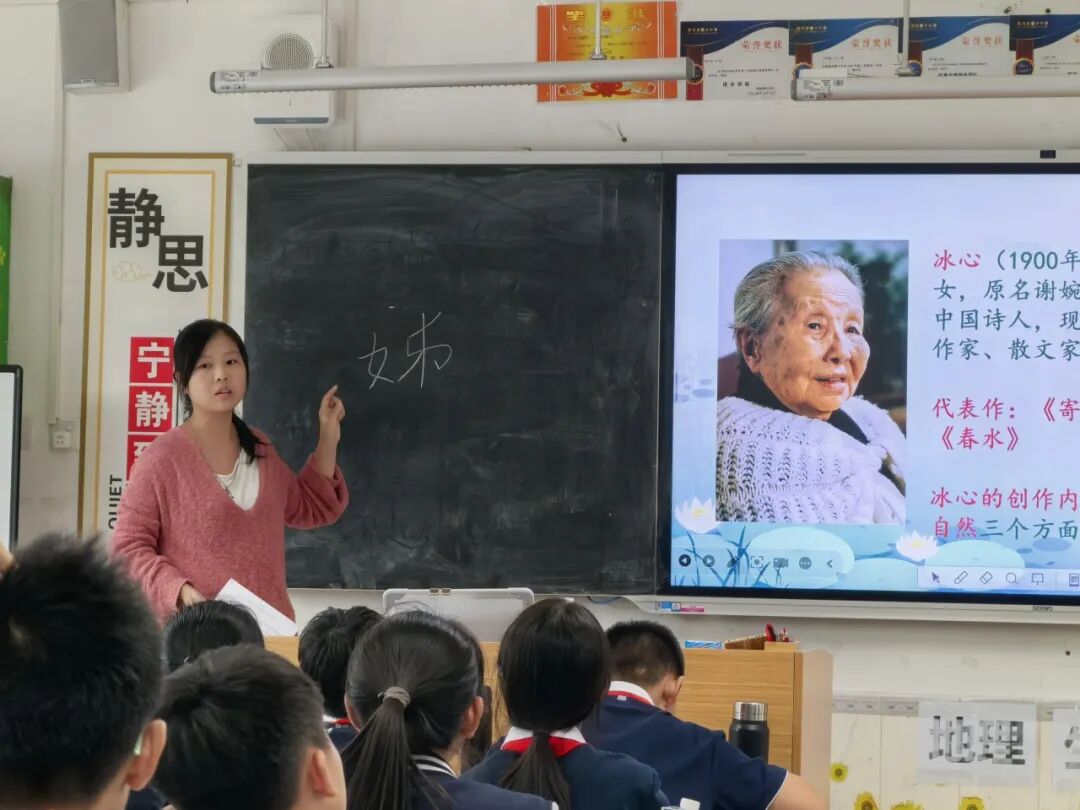 第十中学语文实习老师李艺红(24汉教):“我于今年9月1日在书院老师的帮助下,已来到珠海十中初一年级实习,担任语文实习老师,近两个月,对我而言是一段充满收获与成长的旅程。实习期间,我聆听了多位经验丰富老师的课堂,受益匪浅。不过,在我独立承担了《雨的四季》、《荷叶·母亲》等课堂教学之后,我才发现,在实际教学中既要完成教学任务,还要约束学生纪律,并运用教学机智,这是很需要磨炼的。此外,我还负责主持了《文学影音》社团。这项任务让我学习了如何在课外活动中多元培育学生语文能力。此外,管理自习课和参与考务工作等经历,让我进一步熟悉了各种琐碎的教师职责。幸运的是,我的指导汪迪老师和其他老师都是毫不保留地给予我指导与帮助,他们的关怀与照顾让我倍感温暖。”