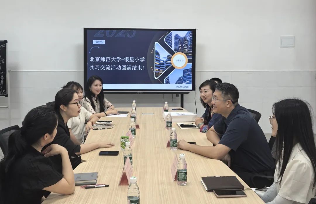 6月5日下午,书院工作团队前往银星小学。付雪莲校长、韩欣璐教导主任、吴小兰办公室主任等指导教师代表参与了交流。付雪莲校长详细分享了银星小学将实习指导“课程化”的系统经验,并阐述了“以父母之心做教育”的核心理念,让与会者深受感动。
