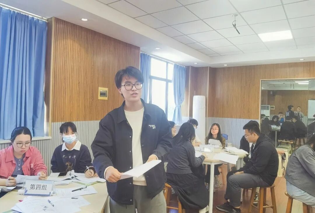 在第十中学,教导主任汪迪老师以生动事例,表扬了实习生们踏实钻研、善于反思、心怀感恩的优秀品质。特别表扬实习生李艺红踏实严谨,在课件打磨、学情调研、考务工作及校园活动中表现突出,用行动诠释了师者担当。指导老师廖莎莎通过案例展示了实习生从备课到授课的完整成长轨迹,肯定了实习生们扎实的专业功底、严谨的学习态度及在区教研中的主动参与。周希林老师则对书院动态考勤跟踪机制表示认可,同时强调课堂实践中的心态突破正是“知行合一”的生动体现。