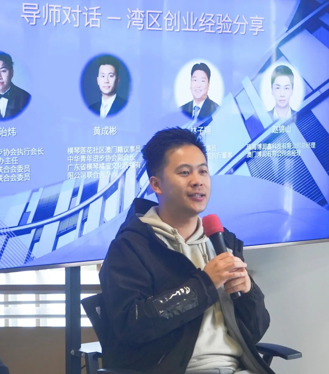 随后,四位青年创业导师分享了创业经验:中华青年进步协会执行会长许治炜谈到了创业的初衷及对个人能力的影响;广东省菊宝文化传播有限公司创始人黄成彬分享了多次创业的起落与感悟,强调创业需明确目标、勇于试错;横琴片仔癀博物馆执行董事林子翔结合自身经历,解读了横琴政策红利对创业的助力,以及湾区产业协同带来的发展机遇;珠海博润鑫科技有限公司总经理赵锦山讲述了从高薪职场人跨界创业的历程,分享了平衡综合能力、借助政策平台的创业心得。